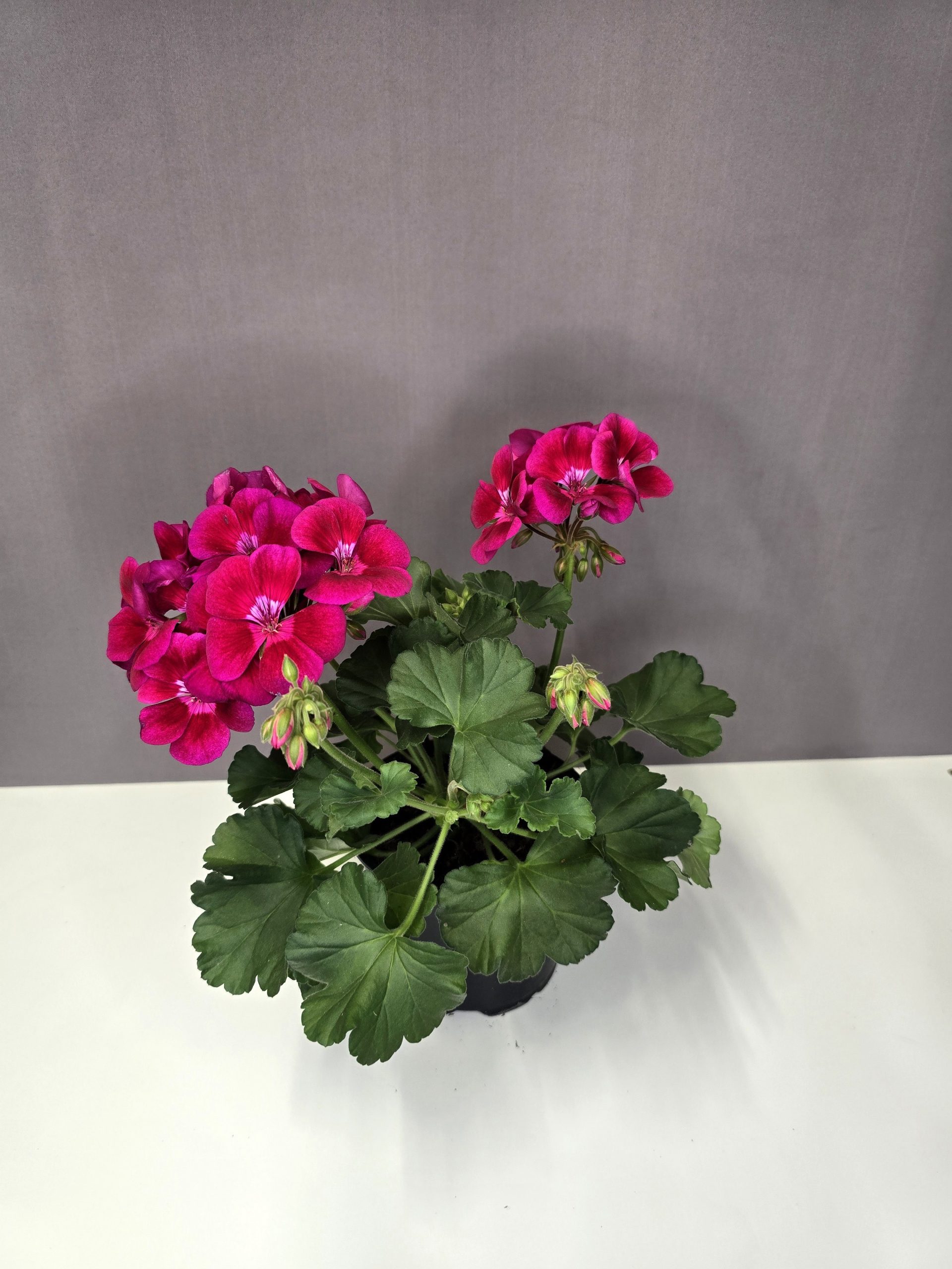 Álló muskátli – ciklámen, piros szemmel
