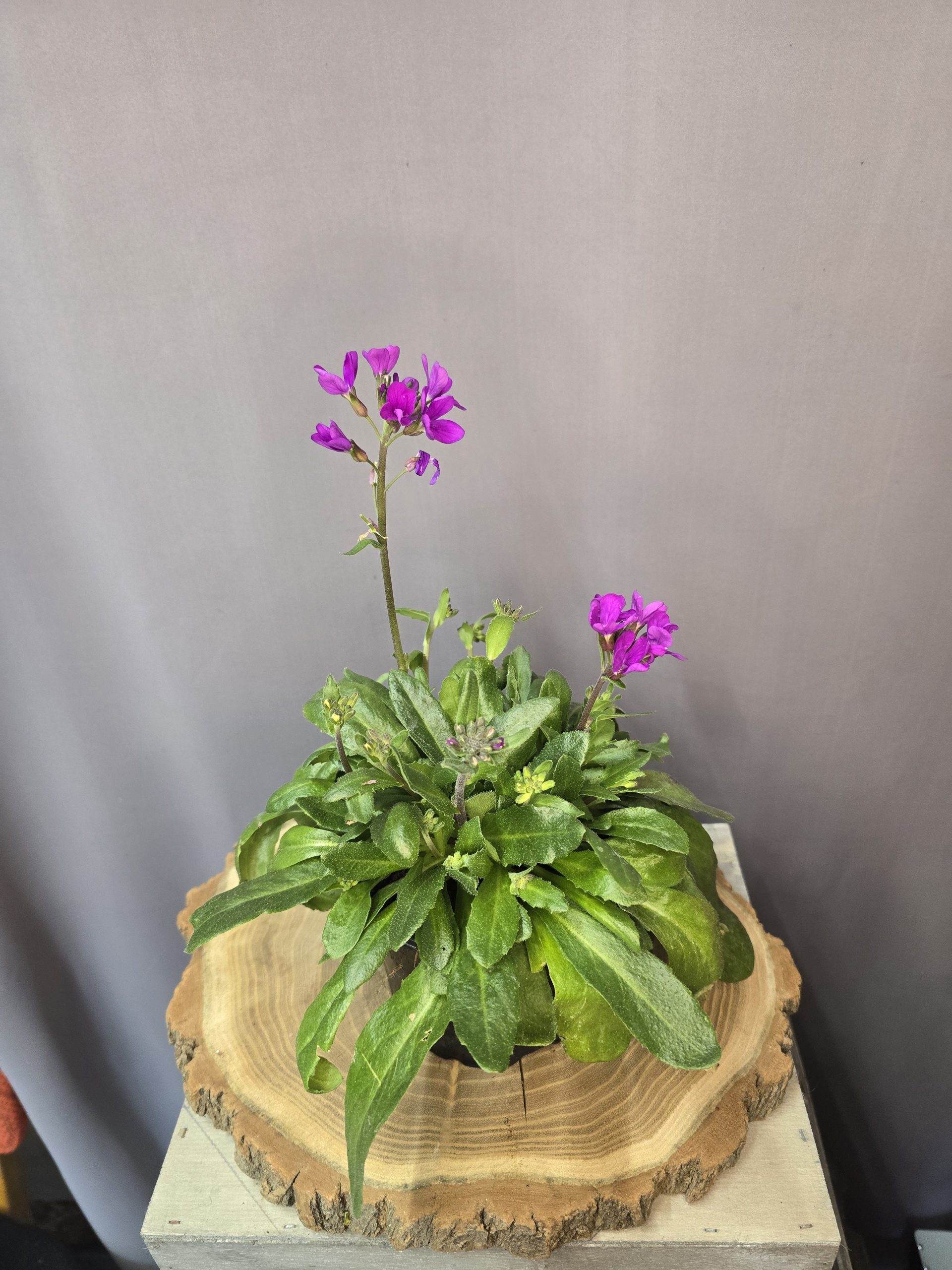 A növény alacsony, terülő növekedésű, és tömött levélrózsát alkot. Apró, enyhén szőrözött levelei sötétzöld színűek, amelyek egész szezonban díszítőértékkel bírnak. Tavasszal jelennek meg a virágszárak, amelyek végén élénk rózsaszín vagy lilás árnyalatú virágok nyílnak, és szinte teljesen beborítják a növényt.