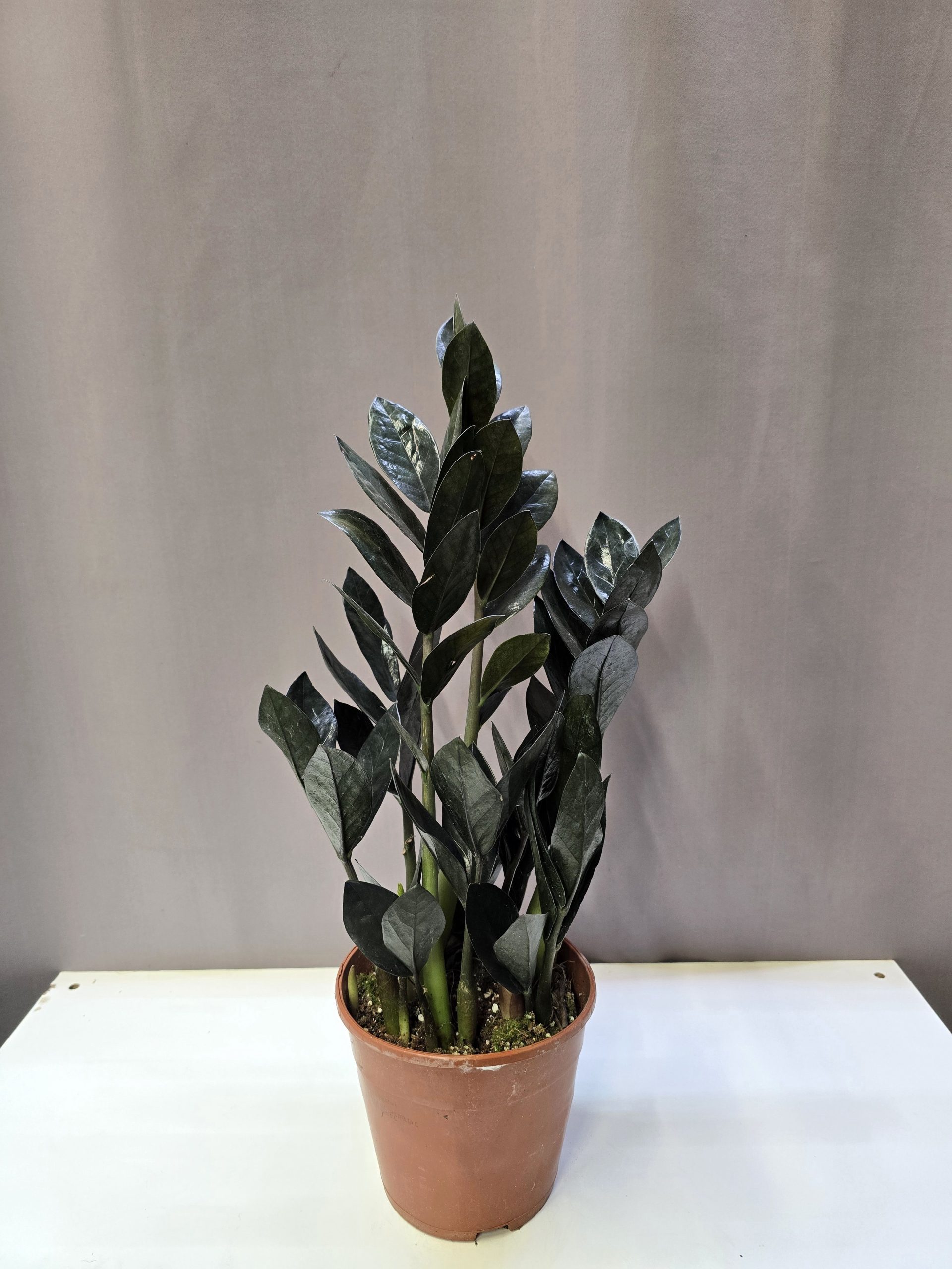 A Zamioculcas zamiifolia ‘Raven’ a klasszikus agglegénypálma különleges változata, amelyet mélyen sötét, szinte fekete levelei tesznek igazán karakteressé. A friss hajtások kezdetben világosabb zöld árnyalatúak, majd az érés során fokozatosan sötétednek, ami látványos kontrasztot ad a növénynek. Fényes felületű, vastag levelei rendezett megjelenést biztosítanak, így a növény egész évben ápolt hatást kelt.